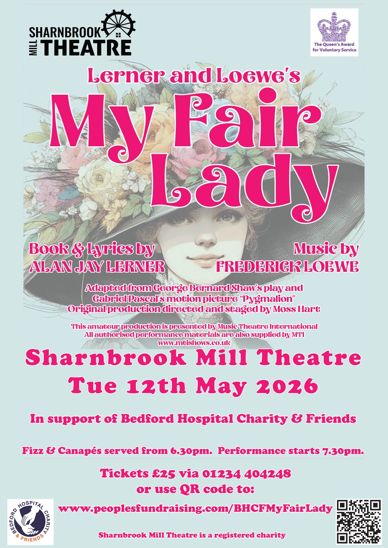 On Tuesday 12th May 2026 starting at 7.30pm, the Sharnbrook Mill Theatre are very kindly providing a charity performance of the much loved musical - My Fair Lady. Before the performance, there will be a fizz and canape reception from 6.30pm onwards to celebrate this Opening Charity Night.