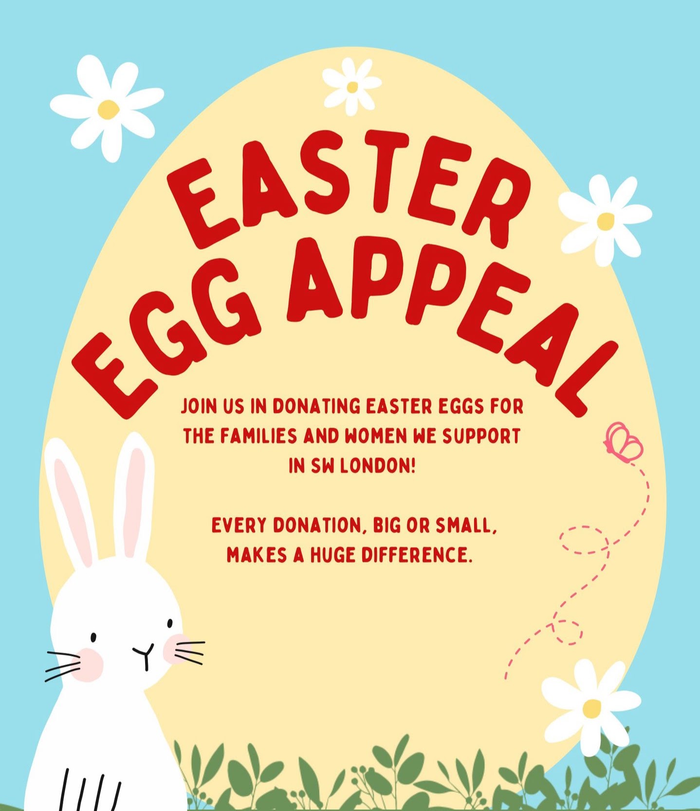 Please donate so we can provide our Wimbledon hotel residents with a lovely Easter egg each. Asylum seekers have to live off £8.86 a week so we like to provide them with a nice seasonal treat, especially the children. Each large egg is £4 - please buy as many as you want! We will be giving them out on 4th April as we're closed for Easter.