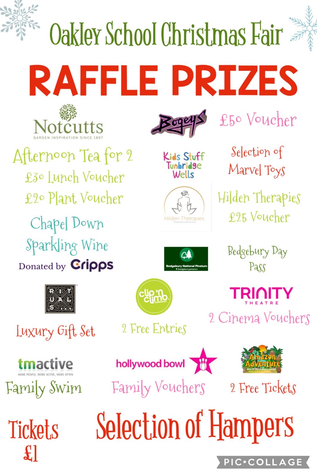 Friends of Oakley School (charity no 1138118) are excited to announce our online Raffle for this year's Christmas Fair (Saturday 29th November 11-2). tickets can also be purchased on the day
