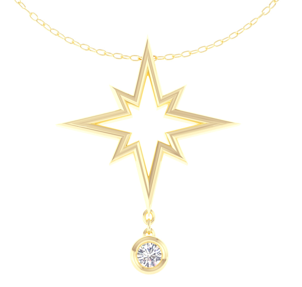 Enter now for your chance to win this spectacular Yellow Gold and Diamond North Star inspired pendant, worth £1000! This pendant was lovingly designed and handmade on-site at Woods Jewellers, Coulsdon.